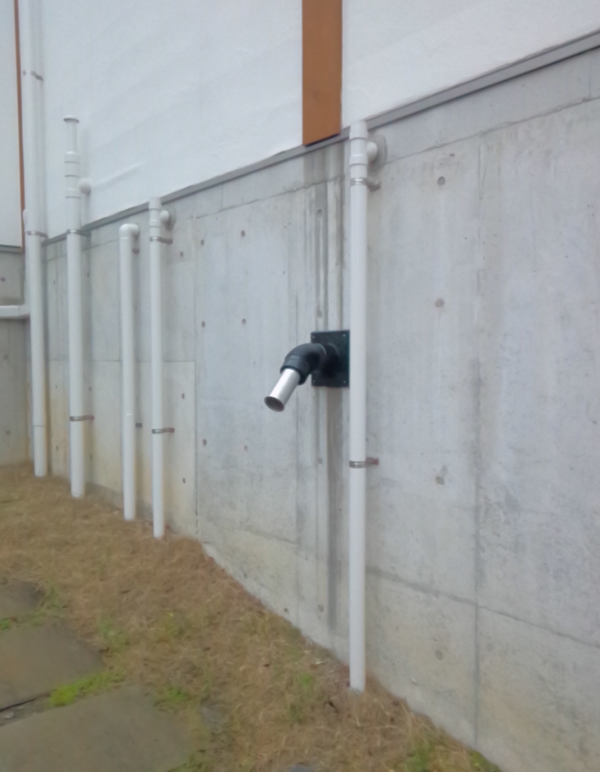 換気扇の穴を利用して、室内立ち上げにて配管しました。